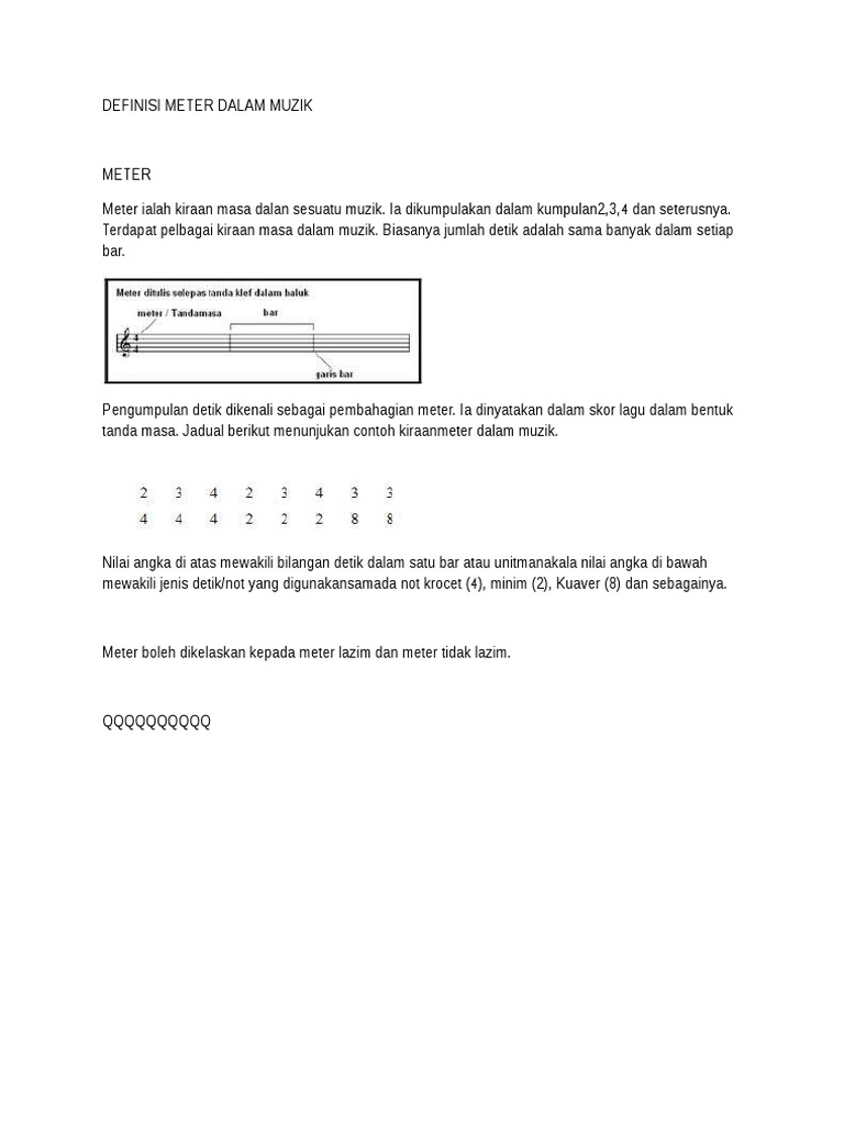 Fikirkan tempo sebagai kelajuan muzik. Tempoh maksimum unit adalah pusingan yang terbahagi kepada dua putih dua hitam ini dan seterusnya. Tunjang Sains dan Teknologi 5 Penilaian dalam Pendidikan Muzik 14 Tunjang Kerohanian Sikap dan Nilai 5 Standard Prestasi Pendidikan Muzik 14.