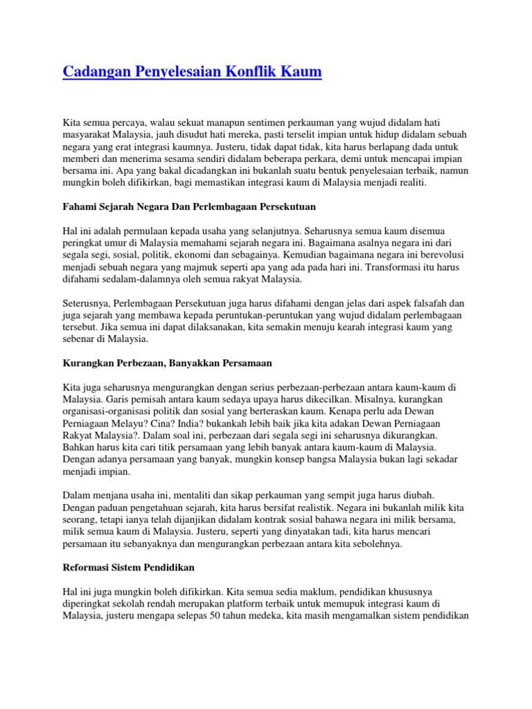 Cadangan Penyelesaian Konflik Kaum Pdf